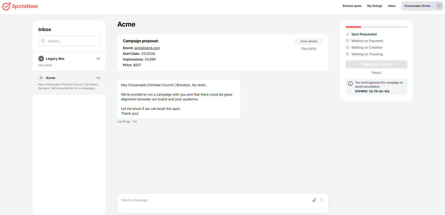 Not necessarily. A confirmed campaign means your spot has been approved and scheduled, but it will only go live on or after the listed campaign start date. You can always check the start date in your campaign details.